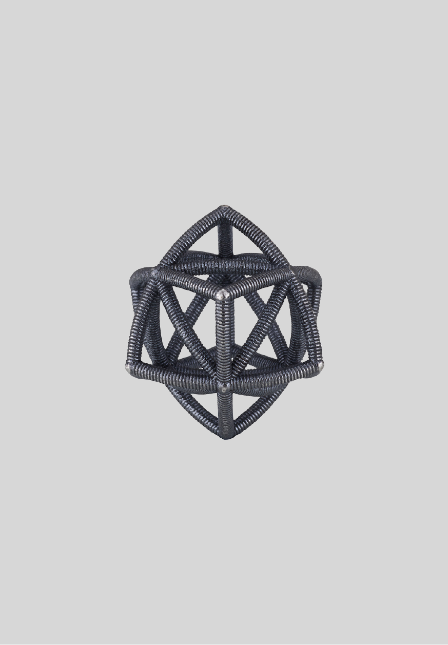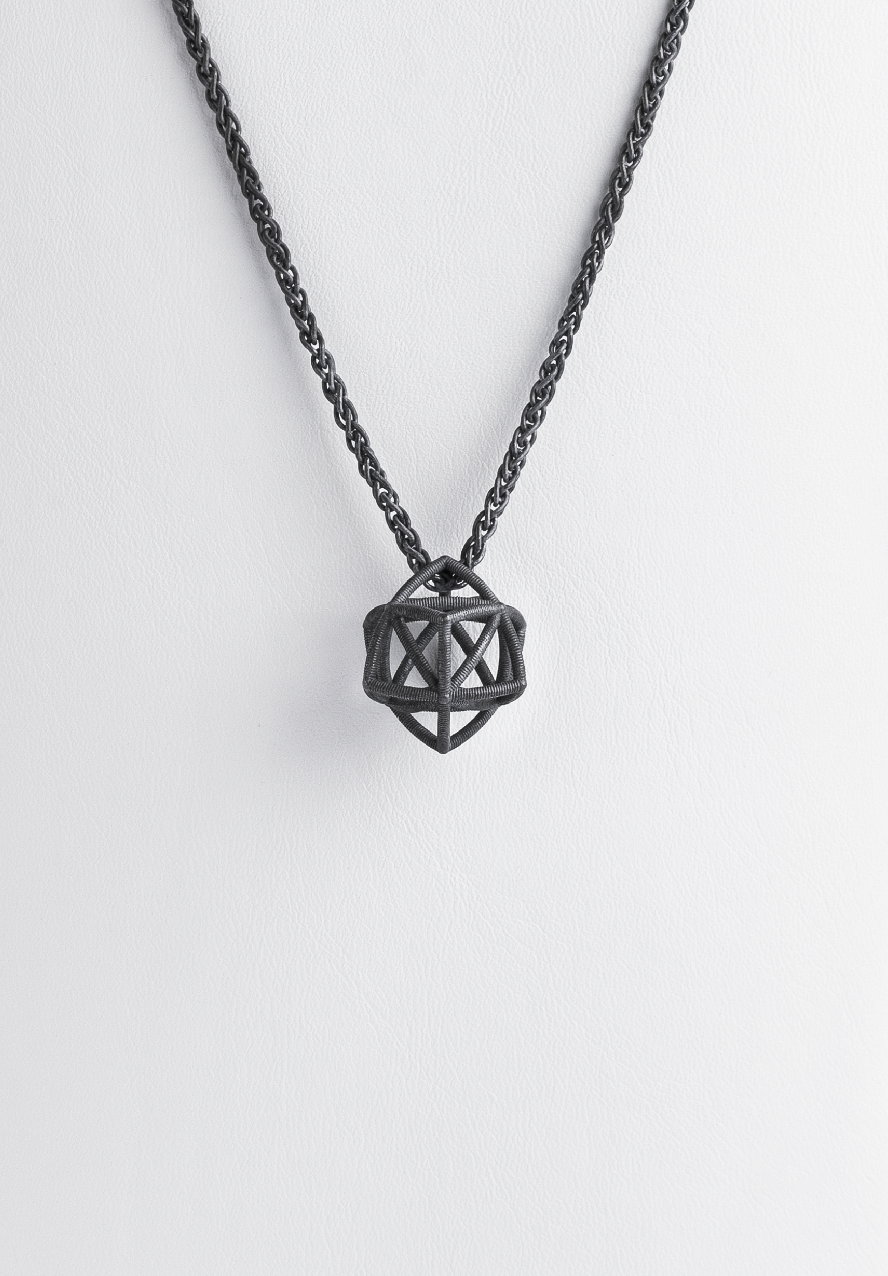 Black silver pendant with a special textured matte-shiny finish. The ribs are spiral, the vertices of the Merkabah structure have a shiny finish, which gives the jewelry a sparkle and a delicately shimmering light reflection as the body moves, ultimately creating a pleasant effect in the eyes of the observer.